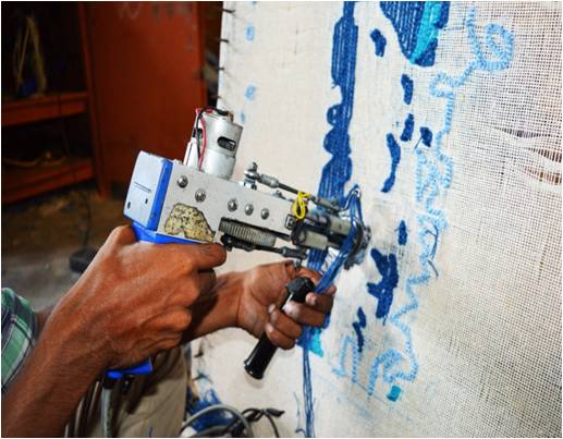 Hand-Tufted carpet is a tufting rug. To produce a hand-tufted rug, Canvas is stretched on a frame then, Stenciled a design on it after it used a tufting gun to tuft yarn through the canvas. This tuft leaves a yarn loop at the back and the front for each shot. After completing the tuft remove the Canvas from the frame .Then, It gone for inspection for quality & design check. After completing this it's hand over for the finishing.For finishing of a hand tufted carpet, a coating of latex is applied at the back to secure the carpet against any wear & tear. Shearing is a process where all the loose ends & projecting ends are sealed or tied to secure the carpet.
