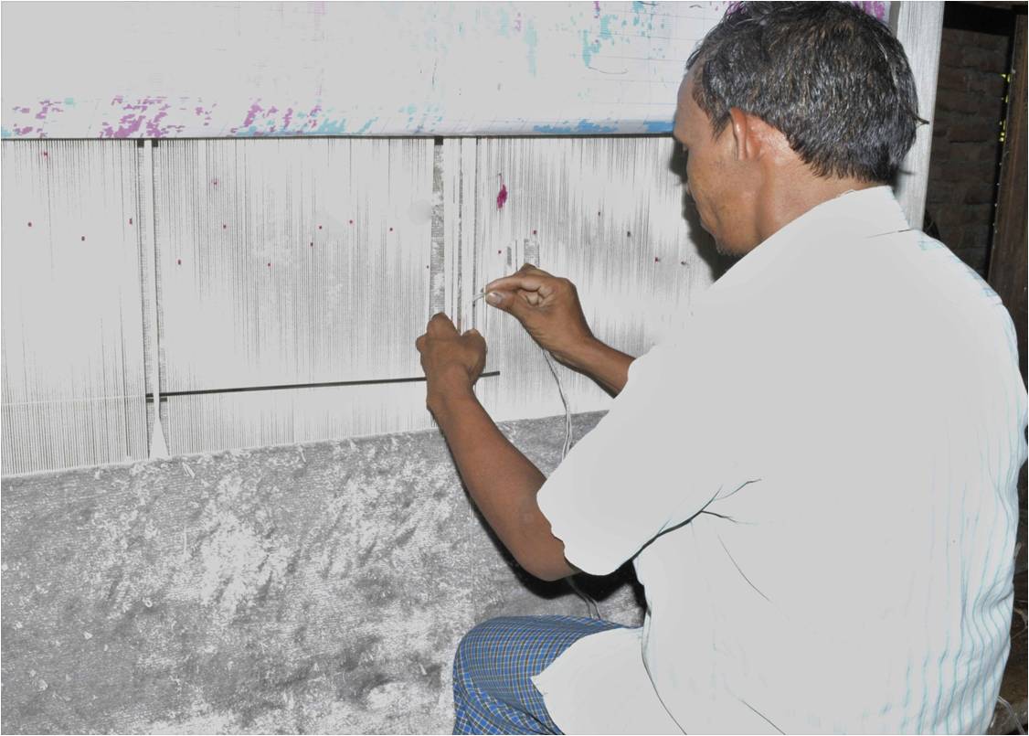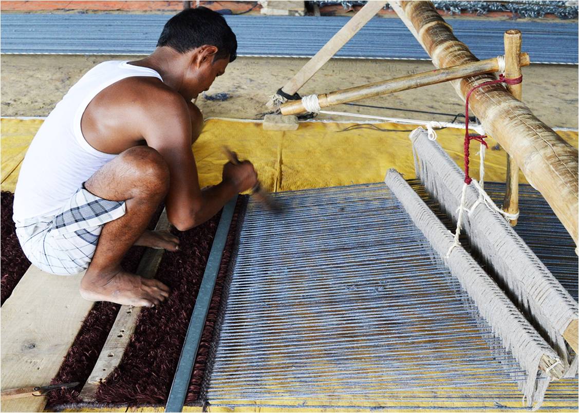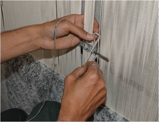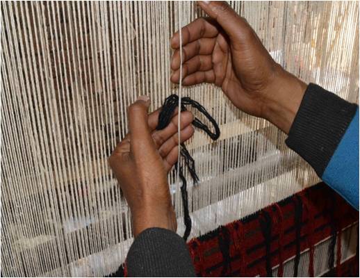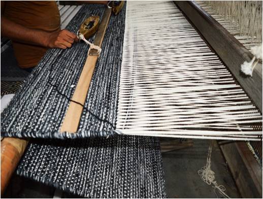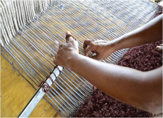 Pit loom is a type of loom which is fit in a pit where the artisan makes the rug through the use of pedals and normally the base of pit loom is stronger than handloom & can go without latex. It is used mainly for producing thin flat-weave rugs but can also weave shaggy pile rugs. It is same as handloom; the only different is its size & height. It is pit loom because of the pit below the loom, which is used for the shedding operation. The space or gap between the two layers of the warp threads is called shed. A shed is produced by means of heals are used for shedding. Weft are inserted manually inside the shed.