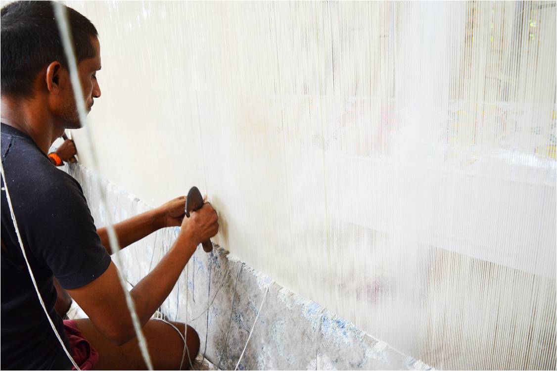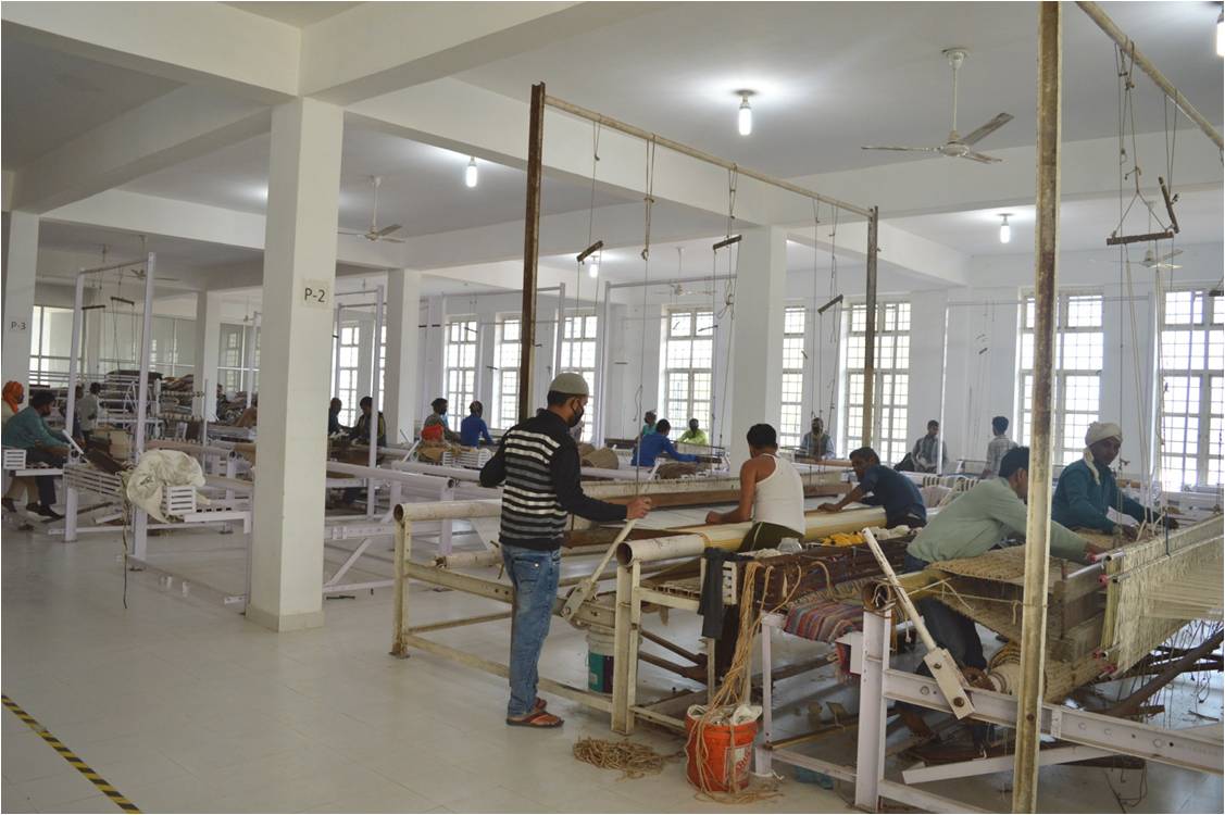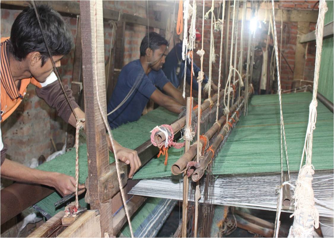 This quality rugs are made in different materials like Bamboo silk, Viscose, Wool etc. Check Box, stripes & Plain carpet and durries are made on it. Rug size 140x200 cm get off from loom in 1 days by 3 weavers.