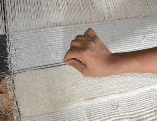 This loom makes rugs in different materials like Bamboo silk, Viscose, Wool, Cotton, Jute etc. Geometrical, Stripes & Plain design durries are made on it. Normally a stripe design rug size140x200 cm get off from loom in 2 days by single weaver.