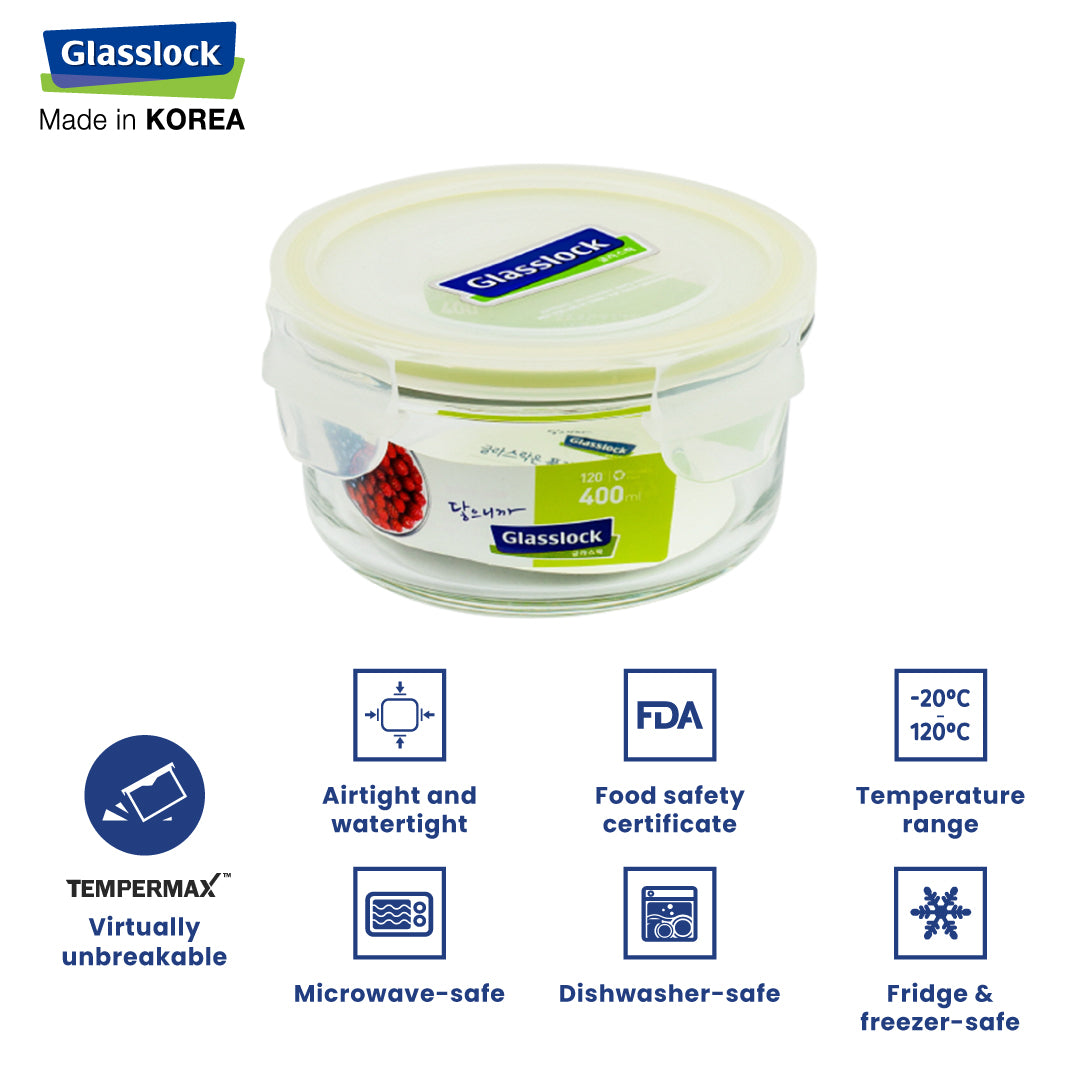 Glasslock Classic Airtight Tempered Food Container, Green Microwave Safe